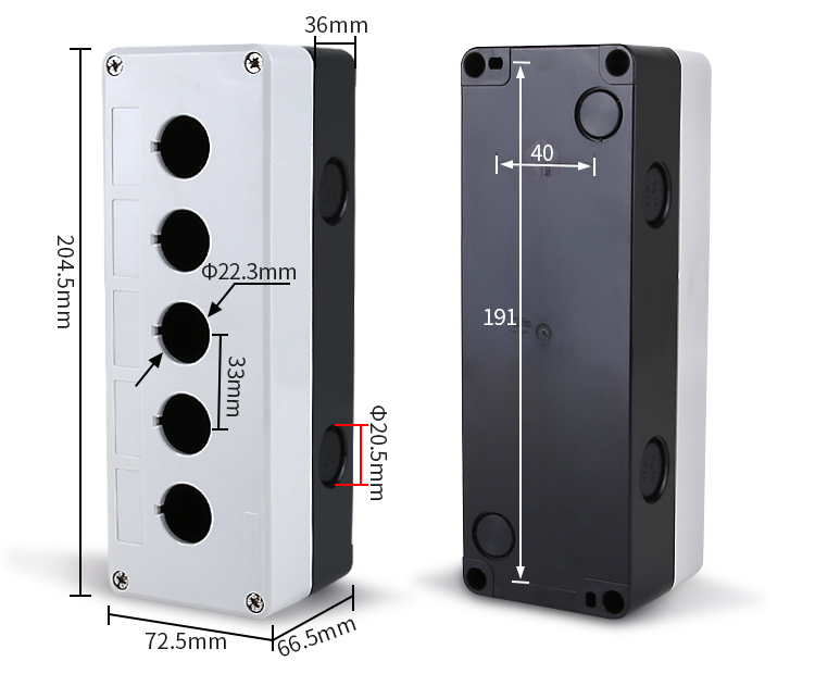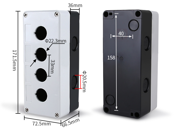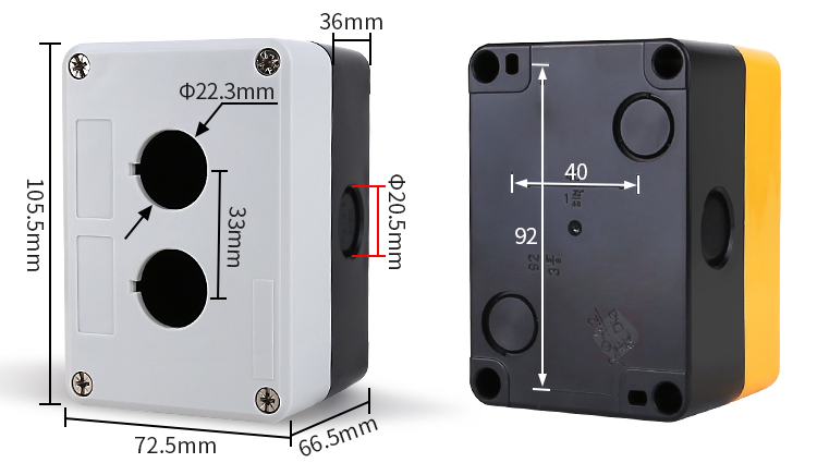 Hộp nhựa lắp nút nhấn là linh kiện không thể thiếu trong máy tự động hóa. Giúp cố định nút nhấn và cách li nguồn điện từ nút nhấn khỏi người thao tác và các link kiện máy khác. Nhằm tránh các tai nạn về điện như giật điện, chạm chập, cháy nổ làm hư thiết bị trong máy.