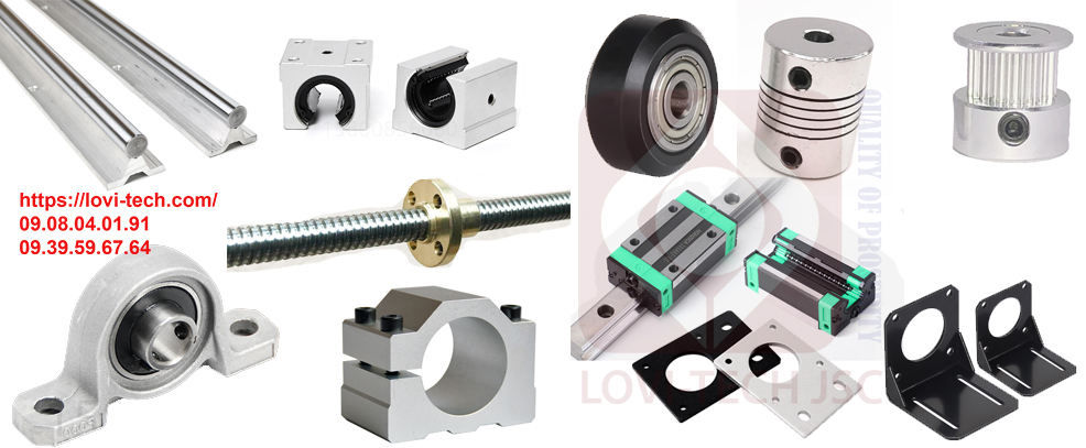 Vì các máy CNC và máy tự động hóa nói chung thường có cơ cấu bàn máy nên thiết bị để lắp bàn máy được sử dụng nhiều như vitme, thanh trượt, động cơ bước, cảm biến gốc home, gối đỡ trục xoay, bát lắp động cơ, nối trục mềm động cơ….